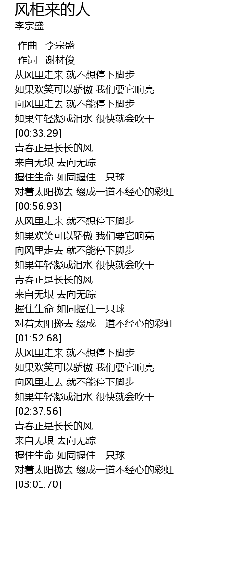 | [00:34.50] | qing chun zheng shi chang chang de feng |