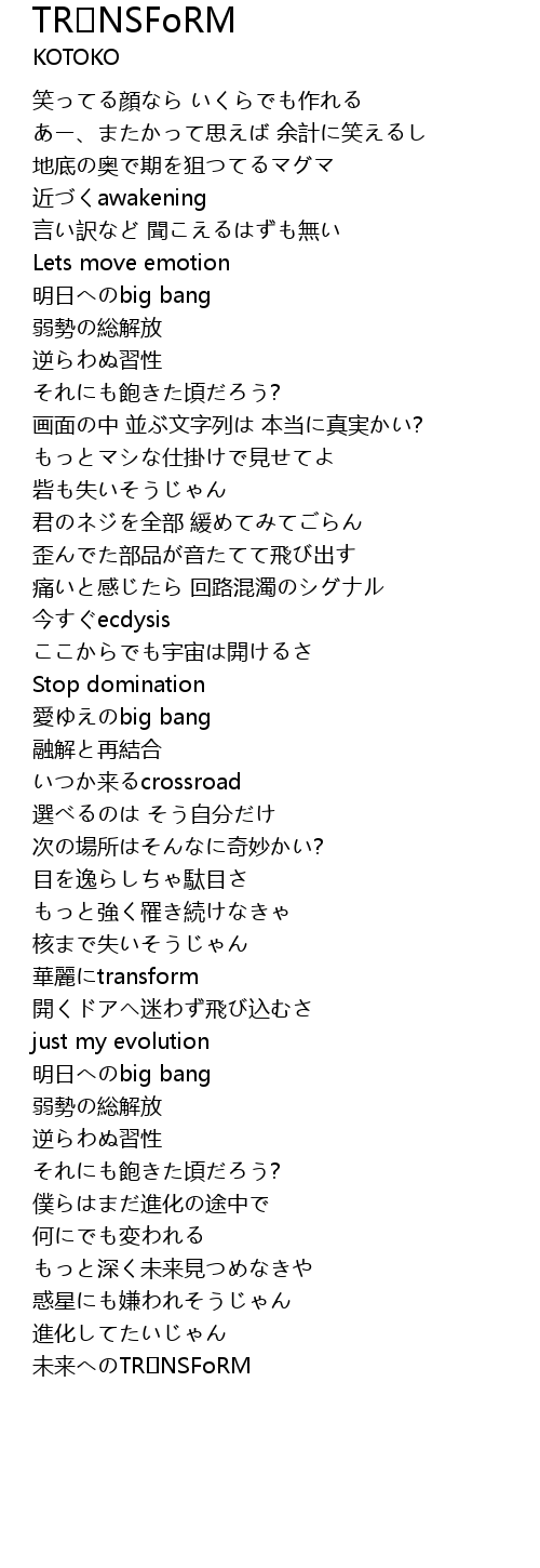 | 未来へのTR∀NSFoRM |