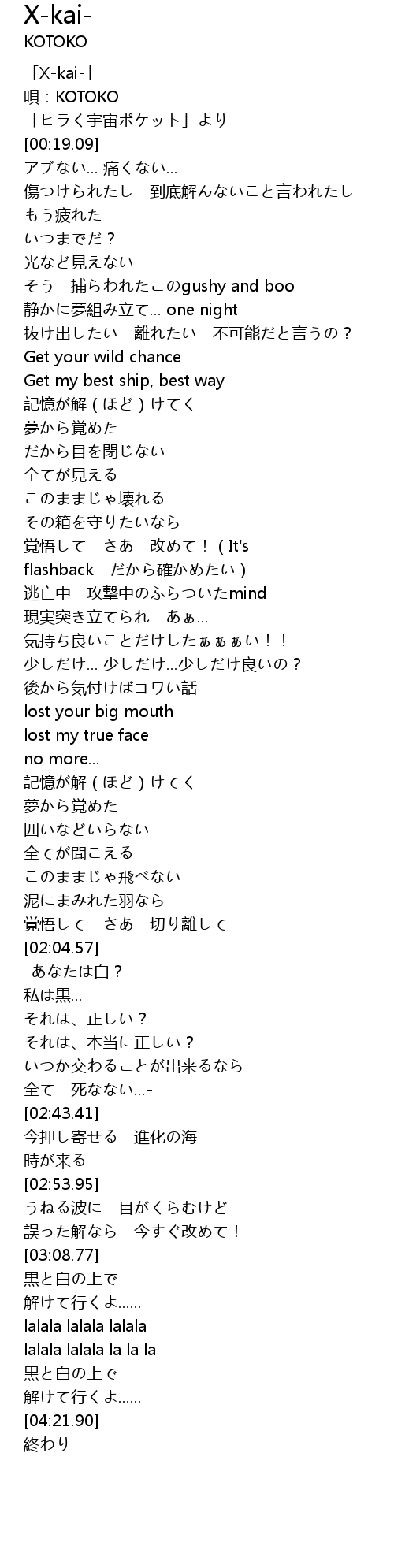| [00:01.21] | 「Χ-kai-」 |