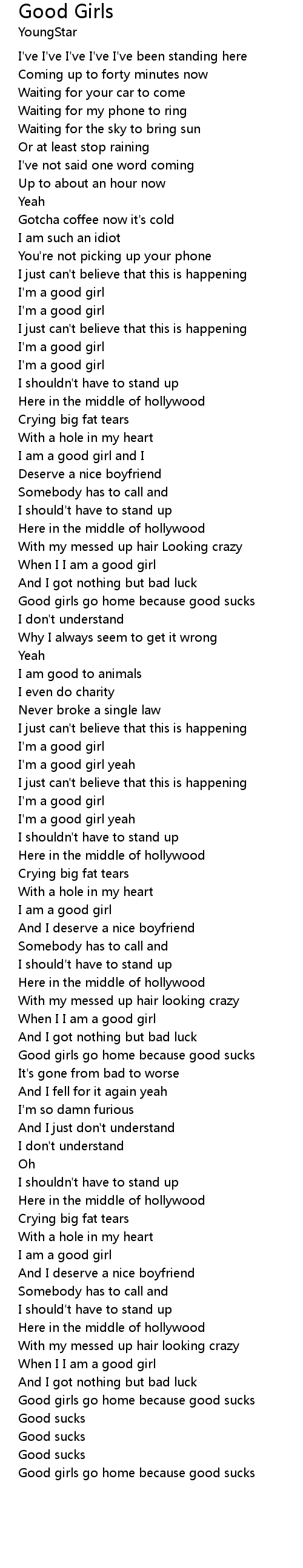 Good girls go home because good sucks |