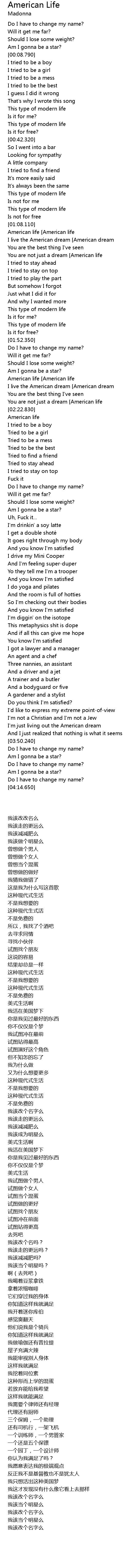 | [02:03.480]American life [American life] | |