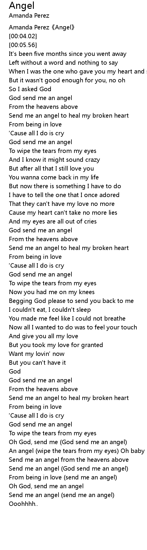 | [00:42.27] | Send me an angel to heal my broken heart |