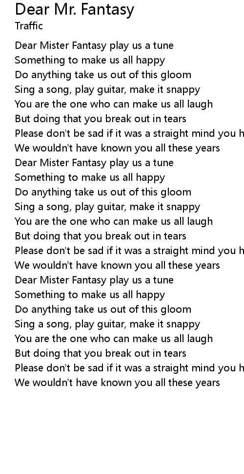 | Dear Mister Fantasy play us a tune | |