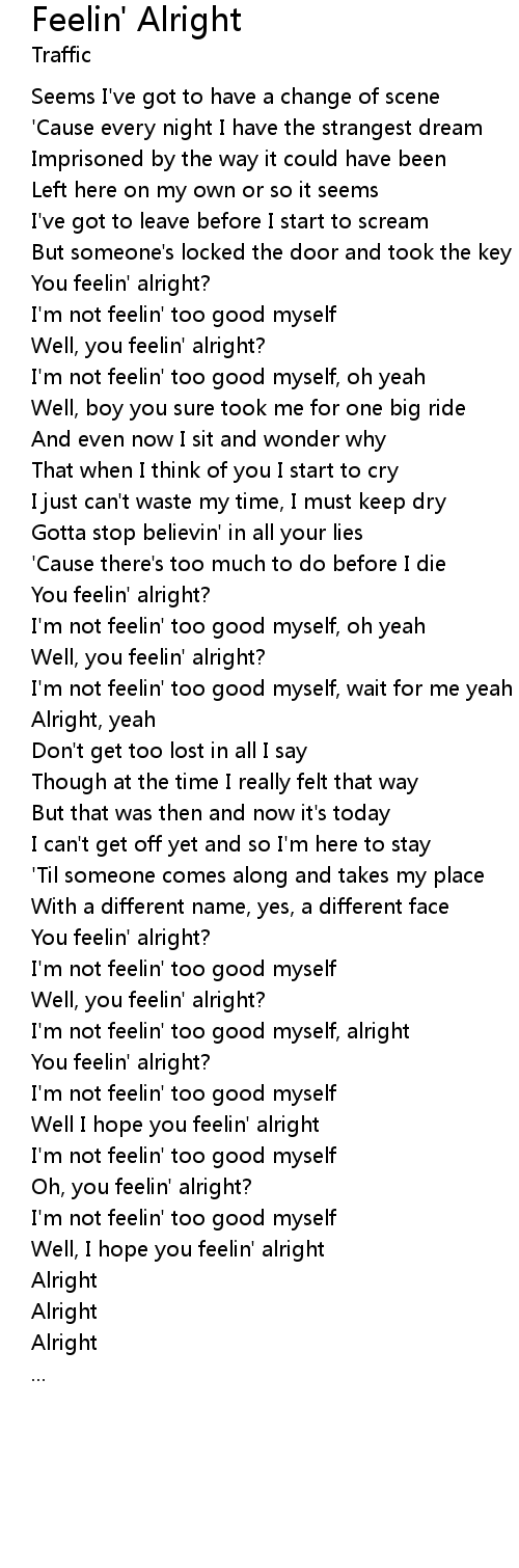 | Well, I hope you feelin' alright | |
