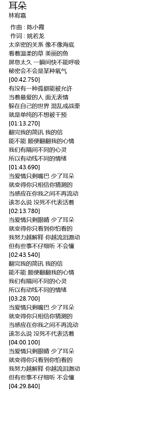 | [03:29.750] | 当爱情只剩嘴巴 少了耳朵 |