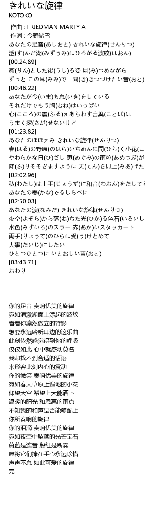 | [00:08.50] | あなたの足音(あしおと) きれいな旋律(せんりつ) |