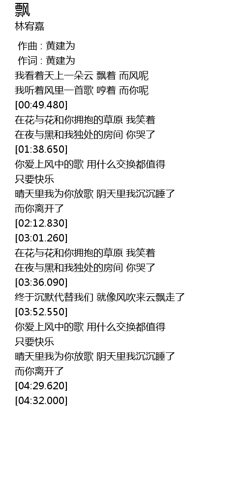 | [01:41.590] | 你爱上风中的歌 用什么交换都值得 |
