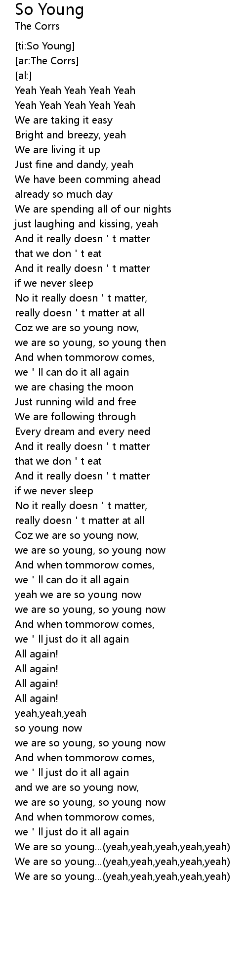 | [03:58.21] | We are so young... yeah, yeah, yeah, yeah, yeah |