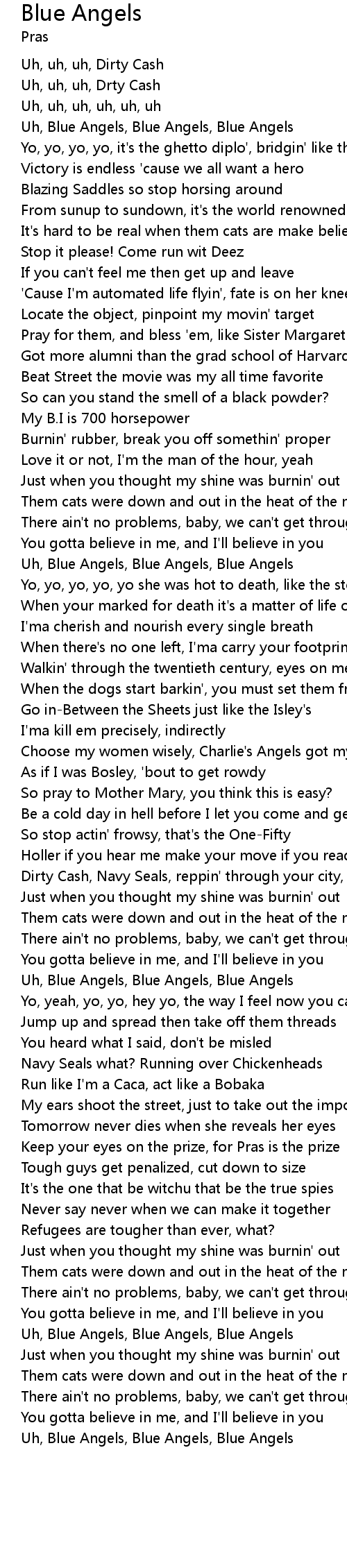 Uh, Blue Angels, Blue Angels, Blue Angels |