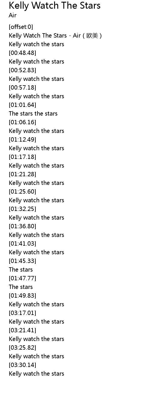 | [00:00.43] | Kelly Watch The Stars - Air(欧美) |