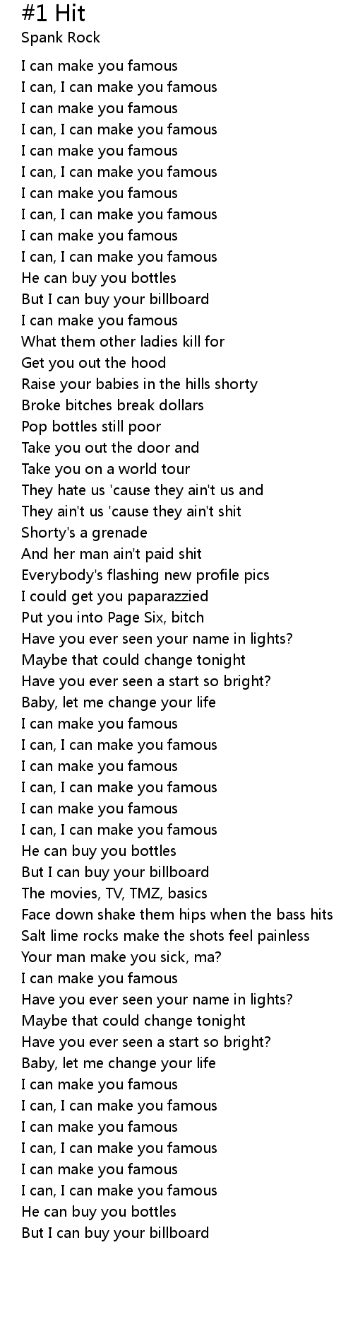 I can, I can make you famous |