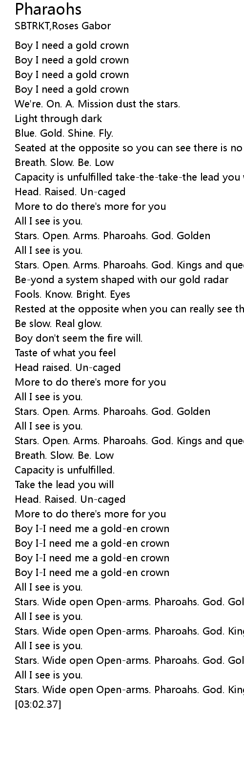 Stars. Open. Arms. Pharoahs. God. Golden |