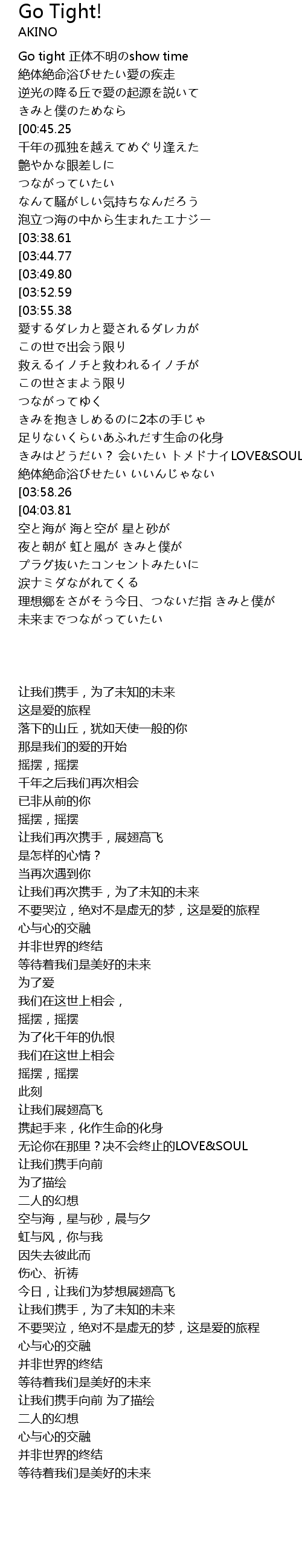 | [01:01.92][03:38.61] | 君とgo tight 正体不明のshow time |