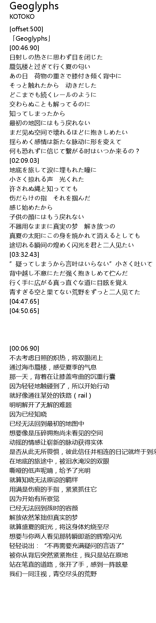 | [04:35.42] | 青すぎる空と果てない荒野をずっと二人见てた |