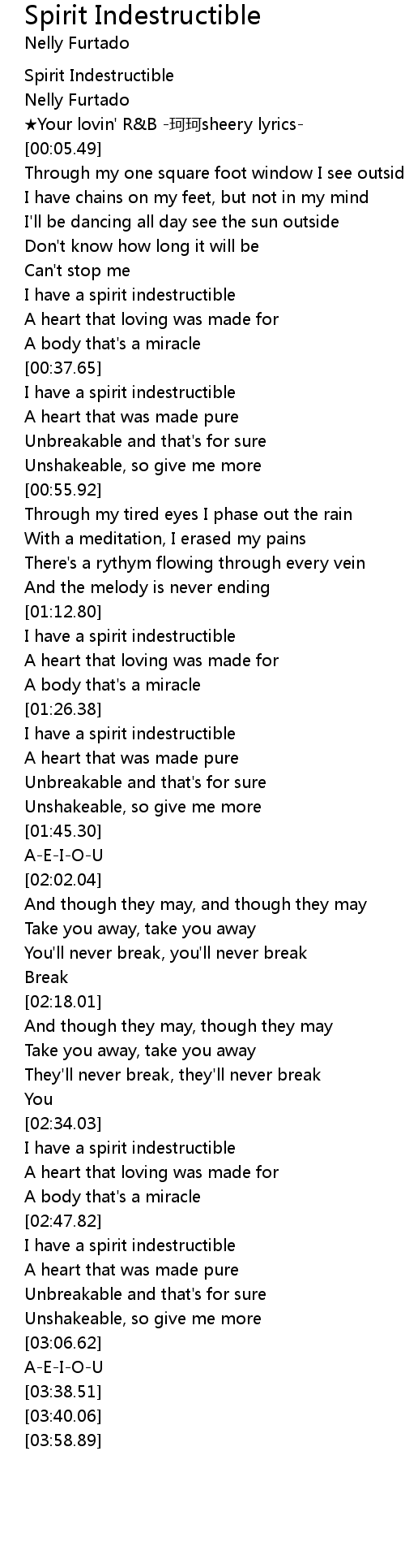 | [00:40.36] | I have a spirit indestructible |