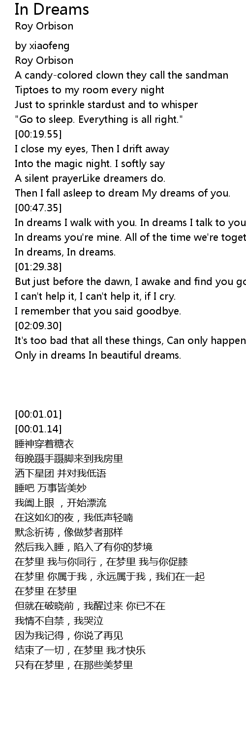 [00:56.06] In dreams I walk with you. In dreams I talk to you.