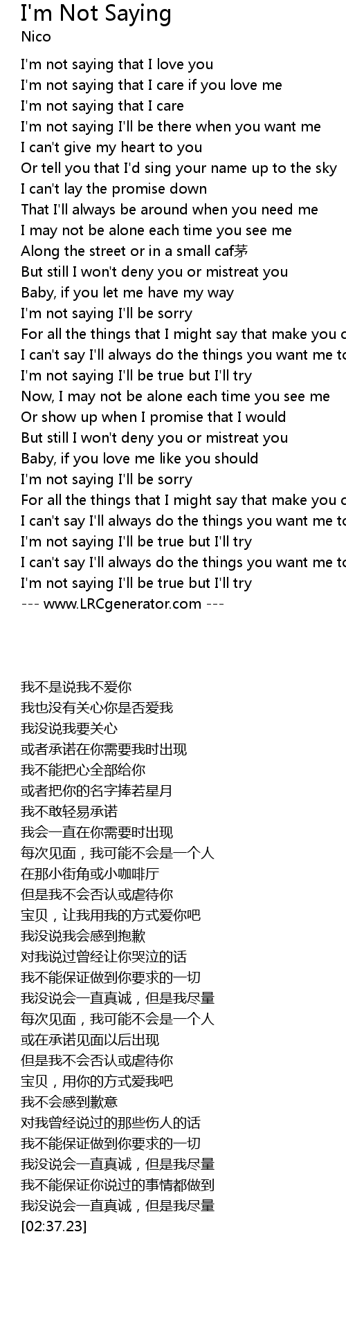 | [00:13.45] | I'm not saying that I love you |