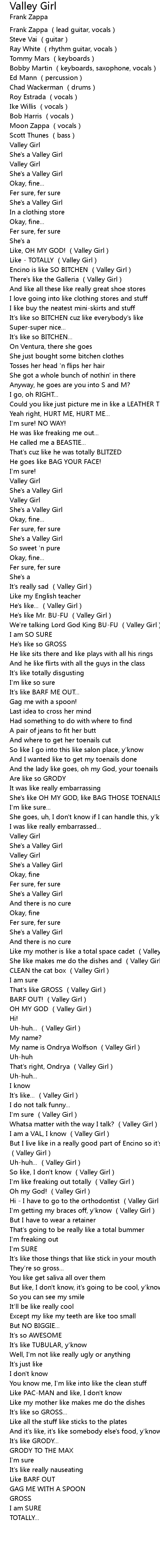 | Whatsa matter with the way I talk? (Valley Girl) | |