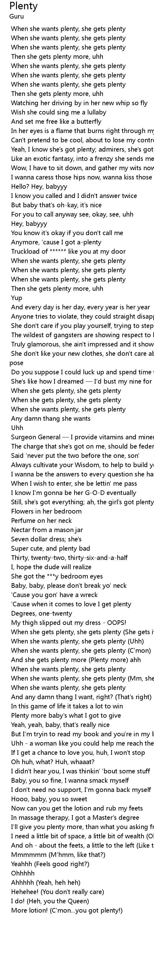 | [01:21.436] | When she wants plenty, she gets plenty |