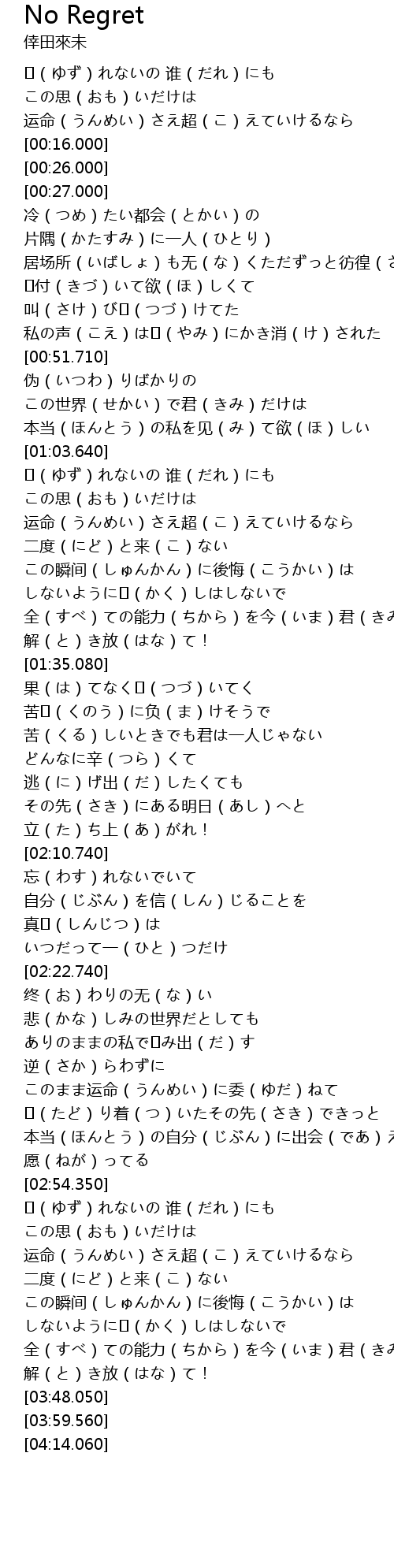 | [01:19.000] | この瞬间(しゅんかん)に後悔(こうかい)は |