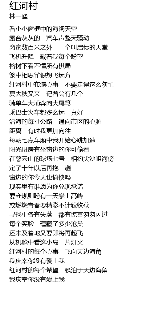 | [03:29.76] | 红河村的每个心事 飞向天边海角 |