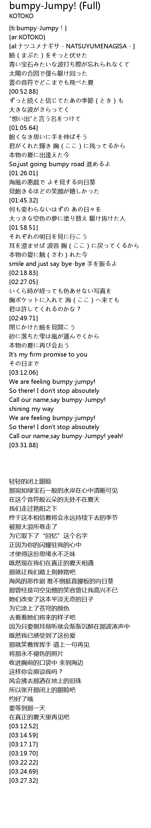 | [03:27.32] | Call our name, say bumpyJumpy! yeah! |