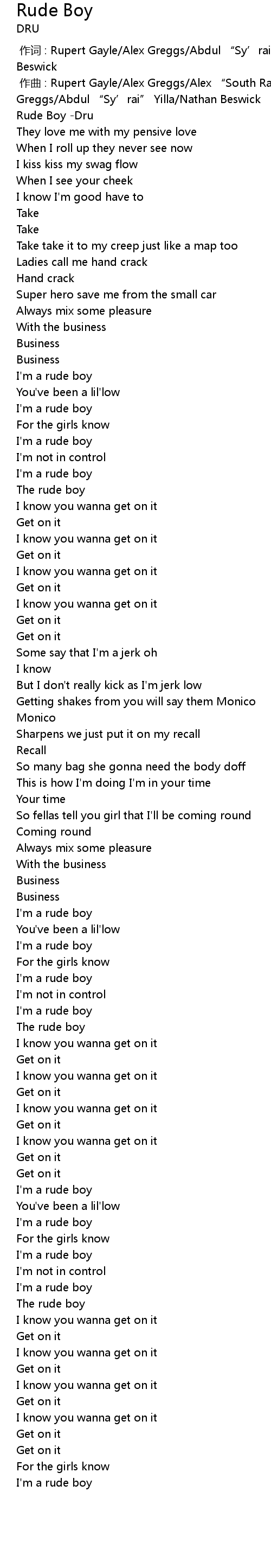 | [00:48.138] | I' m a rude boy |