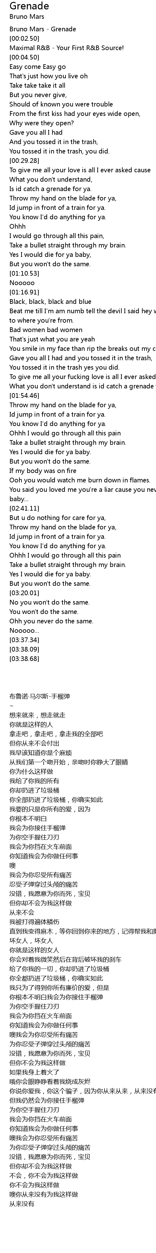 [00:01.00] Bruno Mars - Grenade