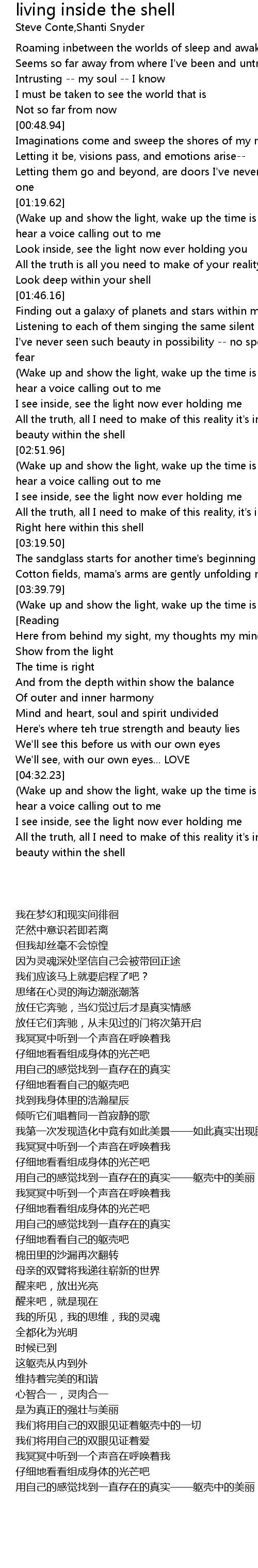 All the truth, all I need to make of this reality it's inside -- the beauty within the shell |