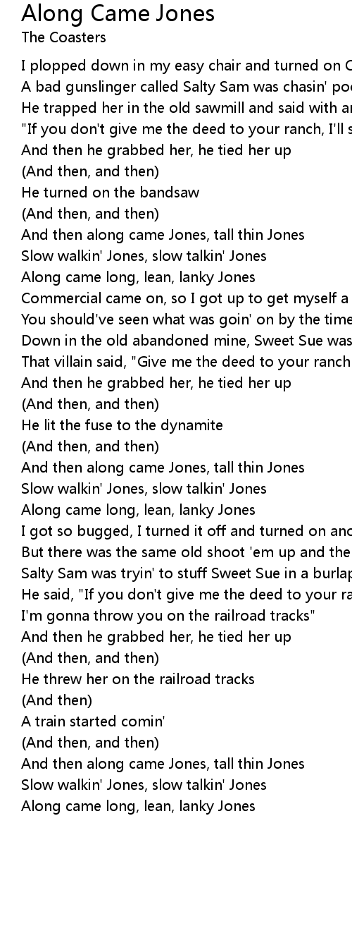 And then along came Jones, tall thin Jones |