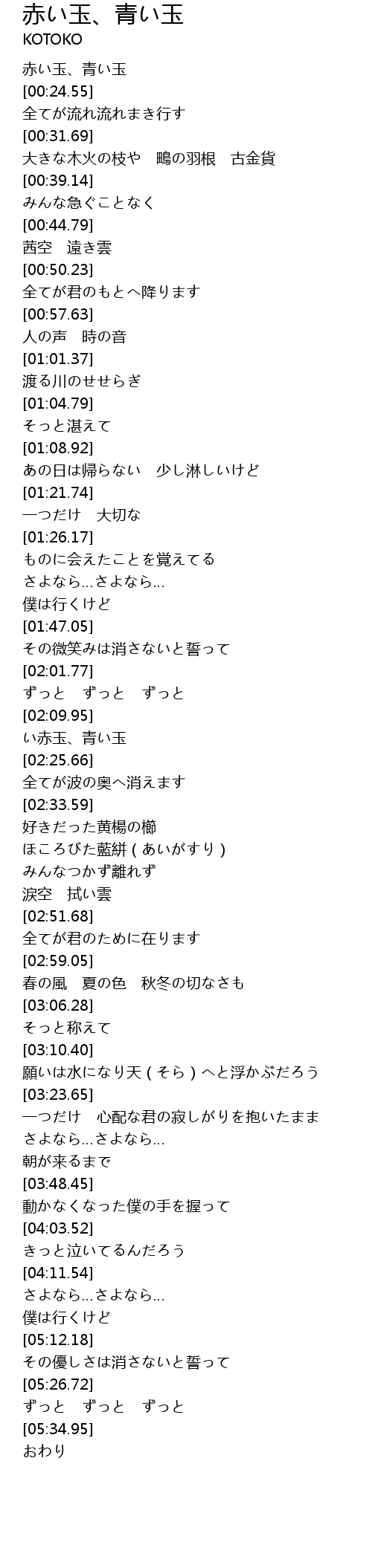 | [02:22.31] | い赤玉、青い玉 |