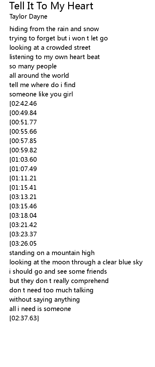 Tell It To My Heart Lyrics