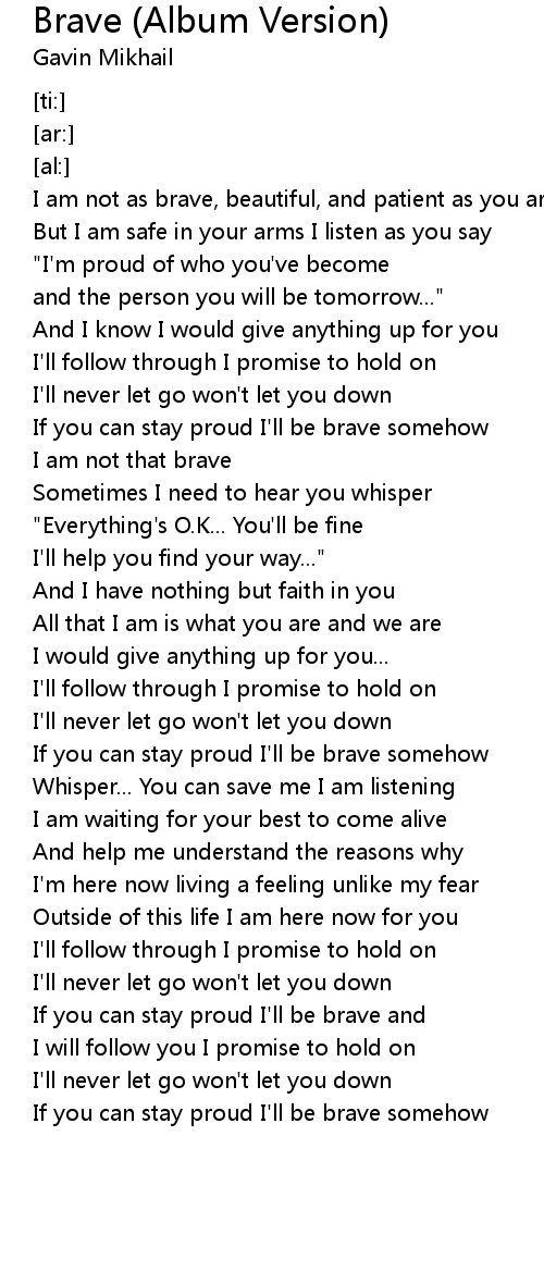 If you can stay proud I'll be brave somehow |