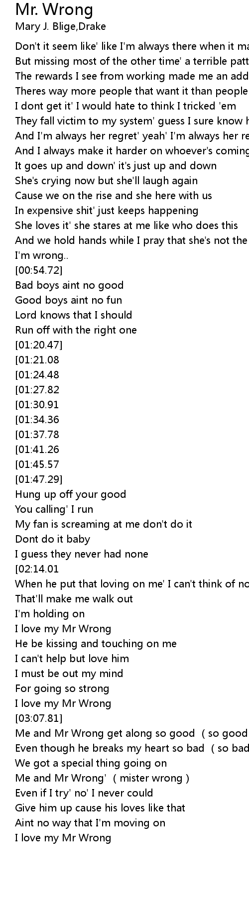 | [03:18.53] | Me and Mr Wrong' mister wrong |