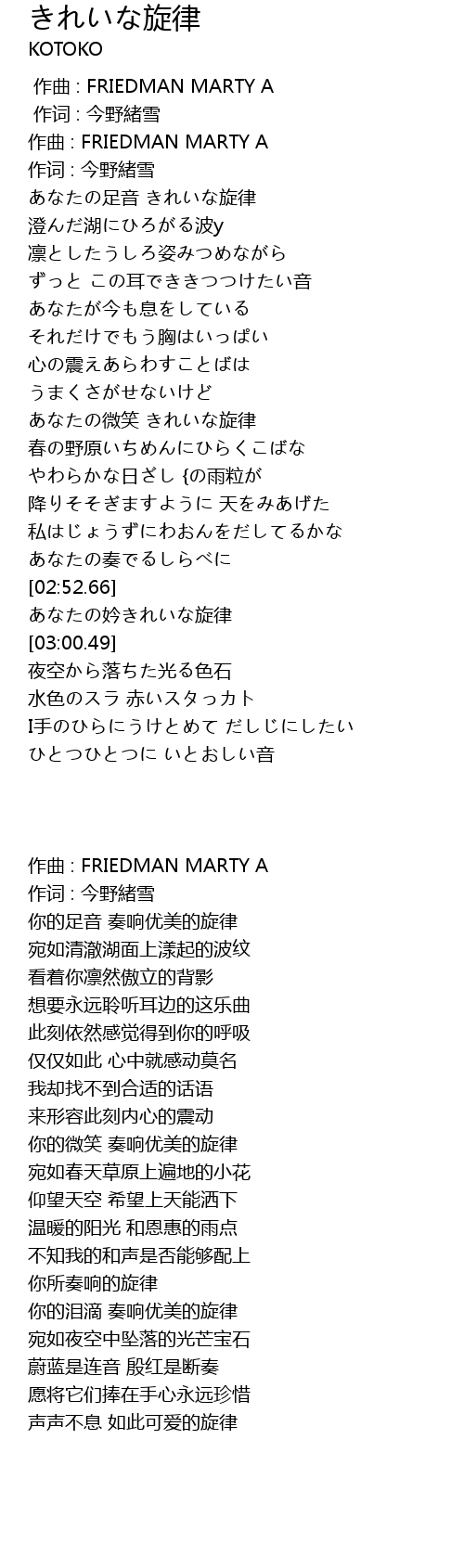 | [02:53.45] | あなたの妗きれいな旋律 |