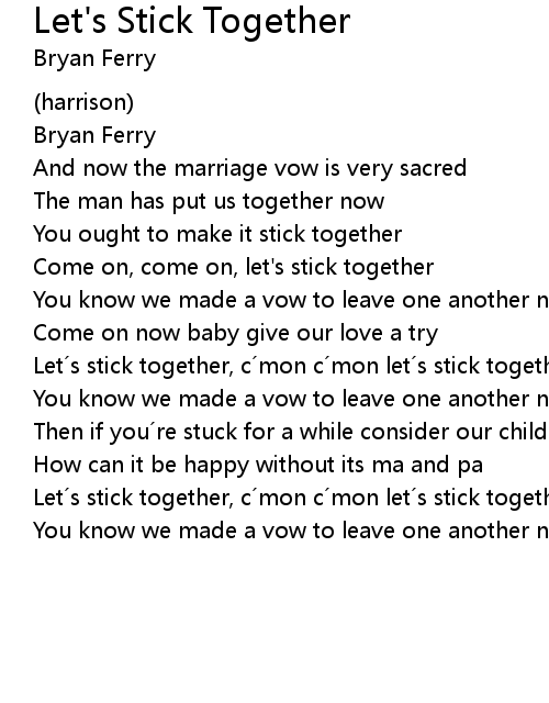 | Let´s stick together, c´mon c´mon let´s stick together | |