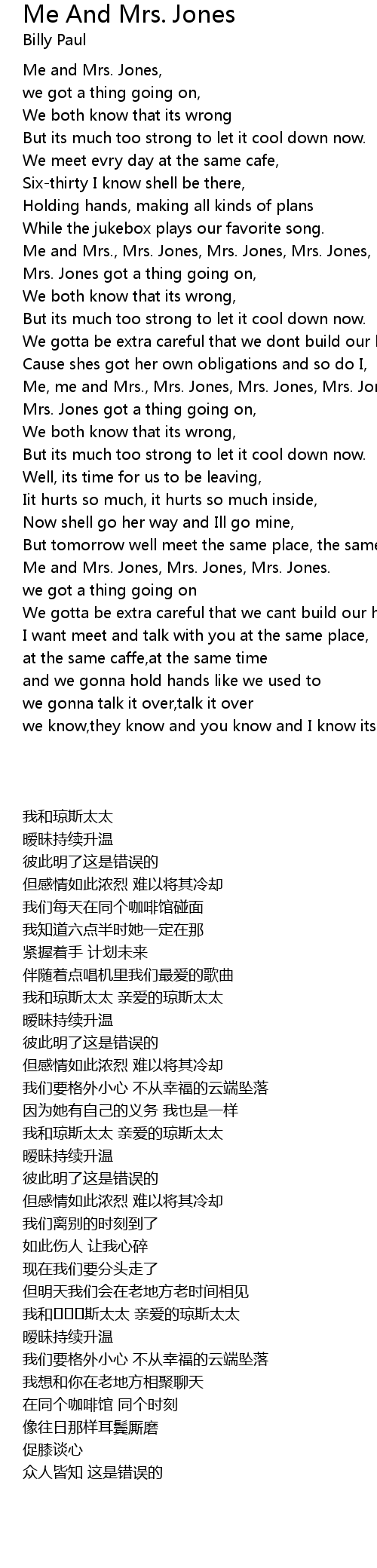 Me and Mrs., Mrs. Jones, Mrs. Jones, Mrs. Jones, |