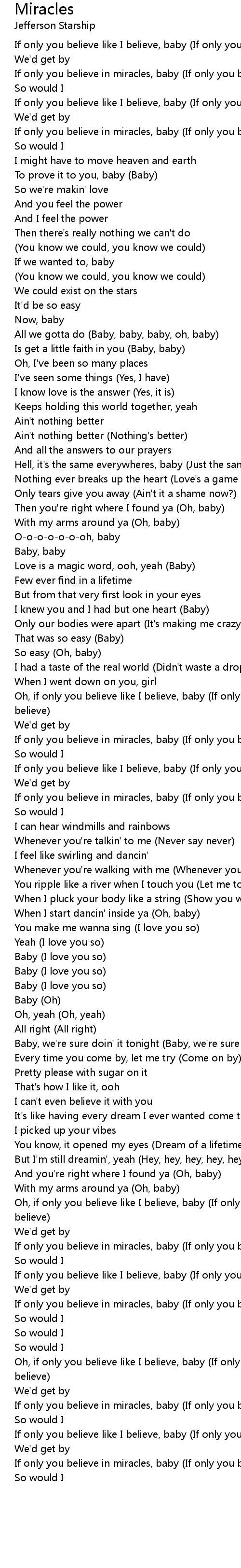 If only you believe in miracles, baby (If only you believe in miracles) |