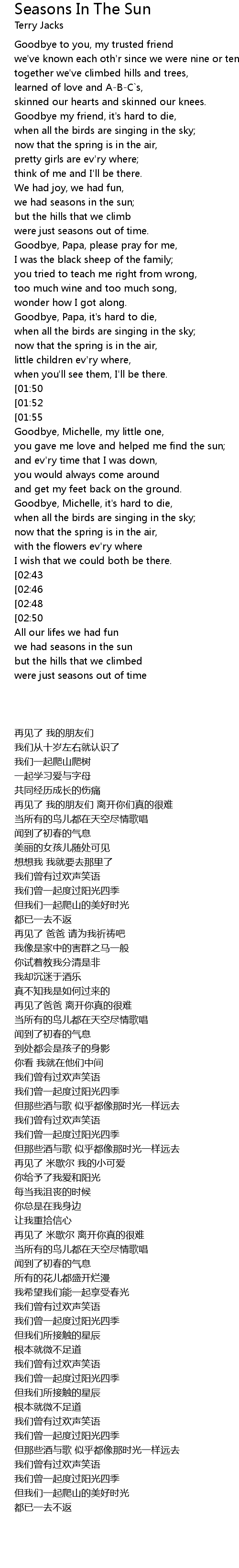 Song Seasons In The Sun