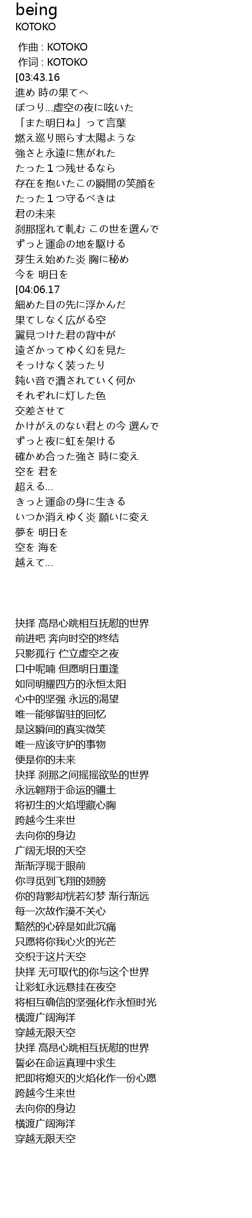 | [00:00.00] | zuò qǔ : KOTOKO |