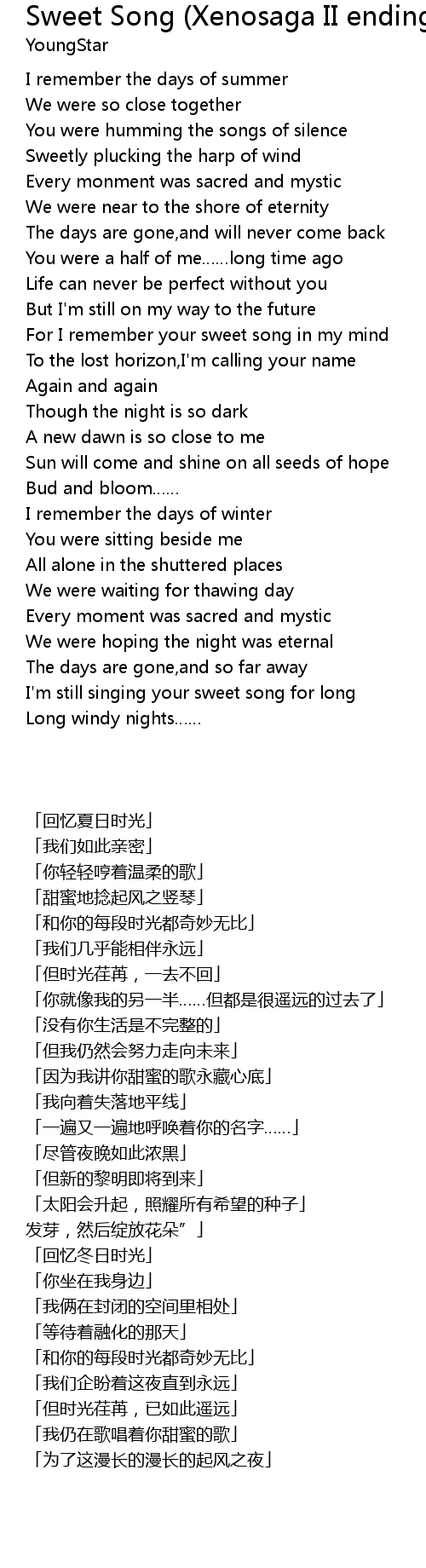 | Song | Sweet Song (Xenosaga II ending theme) |