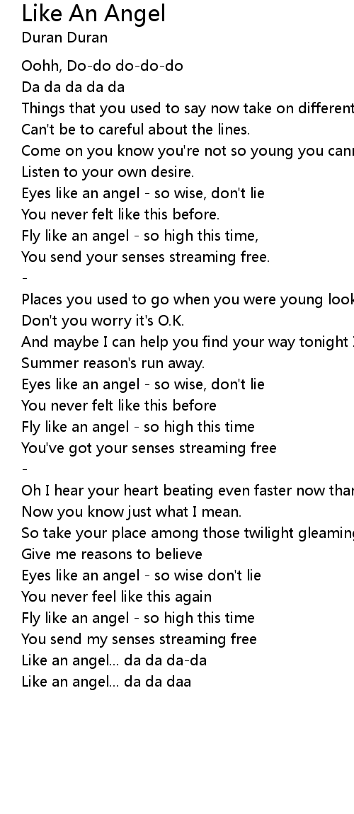 Like an angel... da da da-da |