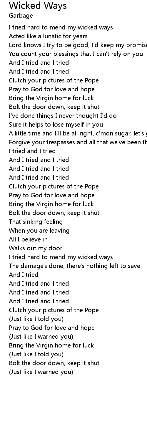 I tried hard to mend my wicked ways |