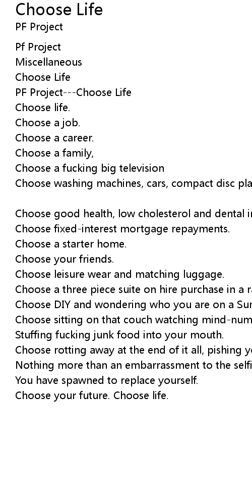 Choose your future. Choose life. |