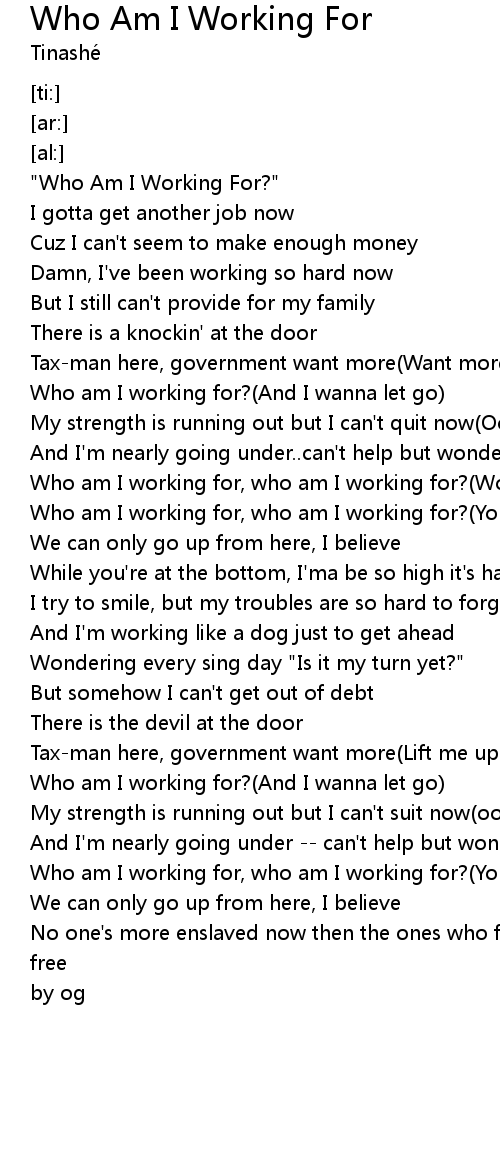 | [01:28.70] | Who am I working for, who am I working for?(You better sing with me) |