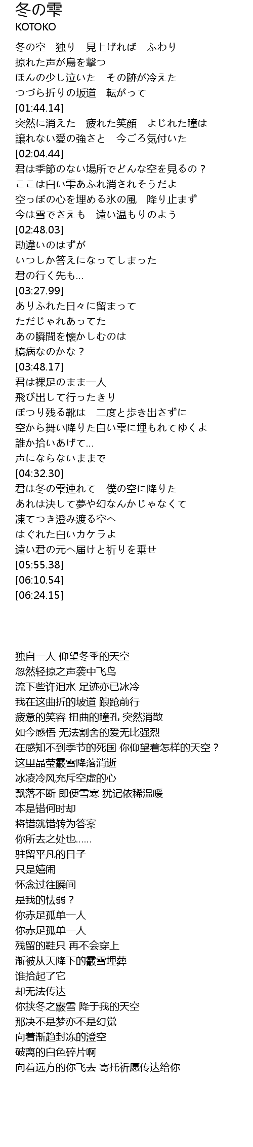 | [02:37.56] | 今は雪でさえも 遠い温もりのよう |
