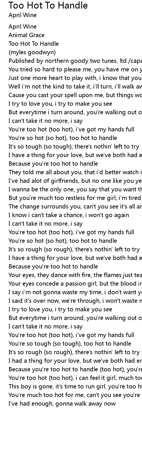 Because you're too hot to handle (too hot), you're much too hot for me |