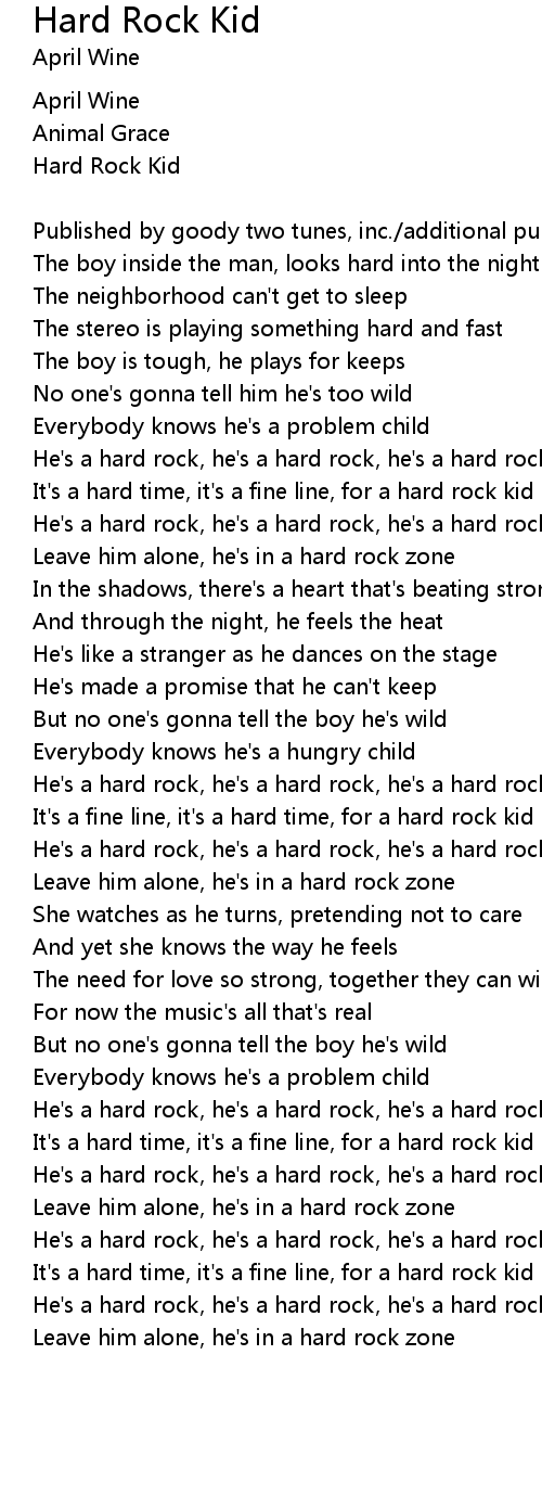 It's a hard time, it's a fine line, for a hard rock kid |