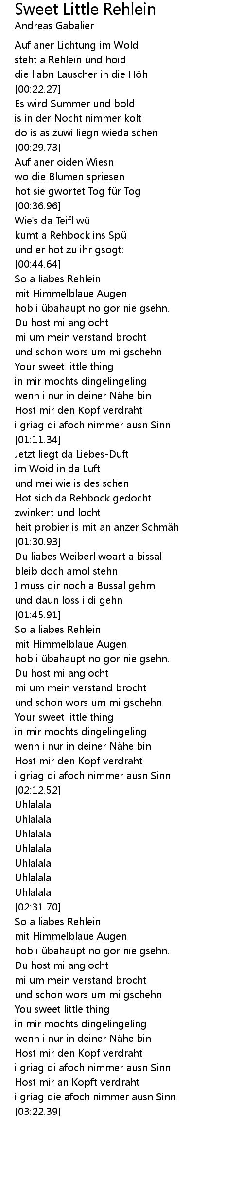 | [00:15.47] | Auf aner Lichtung im Wold |