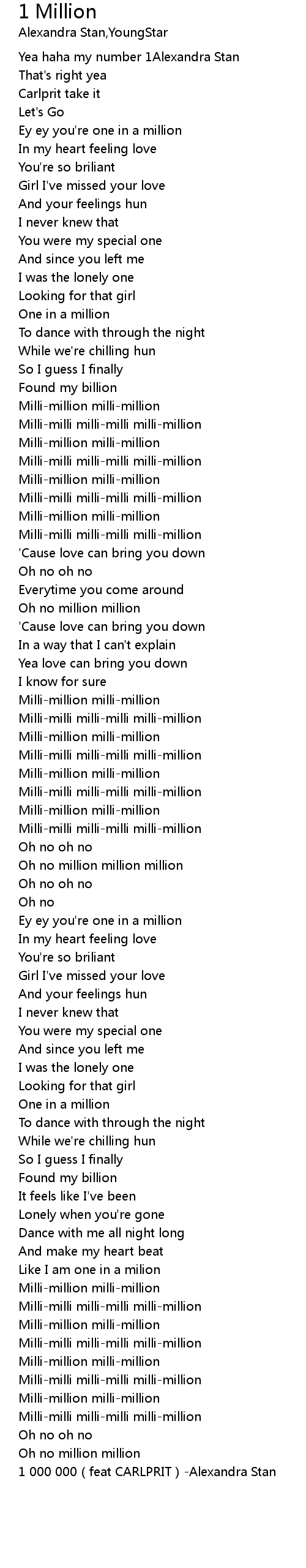 | Song | 1 Million |